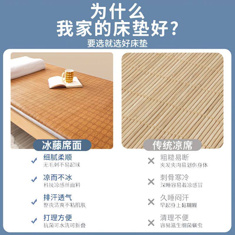 凉席冬夏两用床垫藤席学生宿舍席子上下铺双面打地铺睡垫折叠防潮