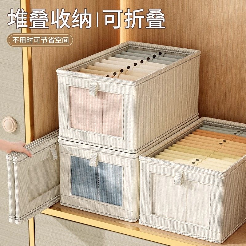 拍1发4衣服收纳筐神器布艺装衣物衣柜分层收纳箱家用框裤子整理盒