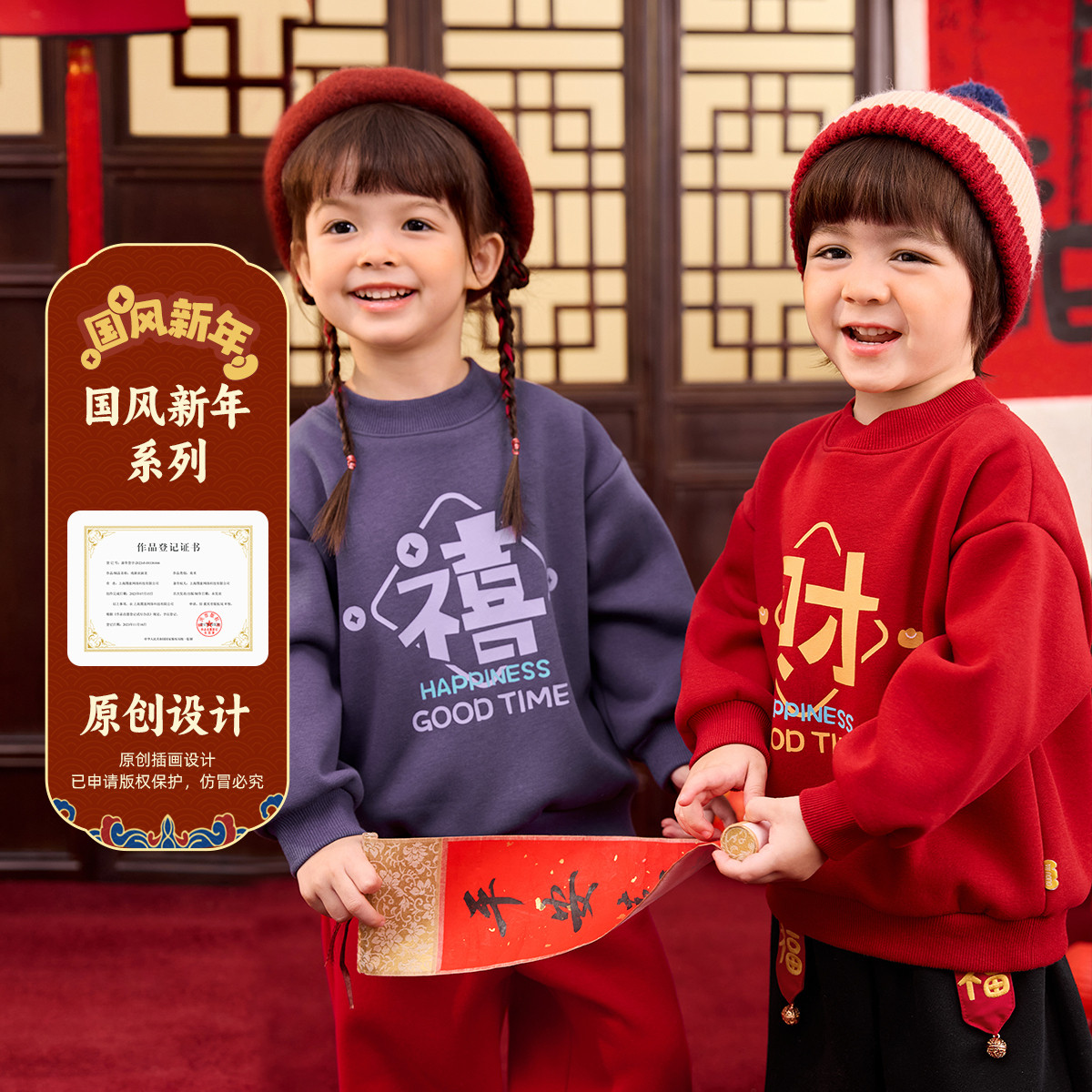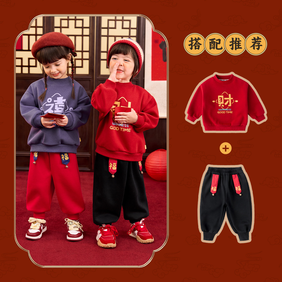 嘟嘟家儿童红色新年卫衣红色男童喜庆拜年服女童国风唐装宝宝礼服