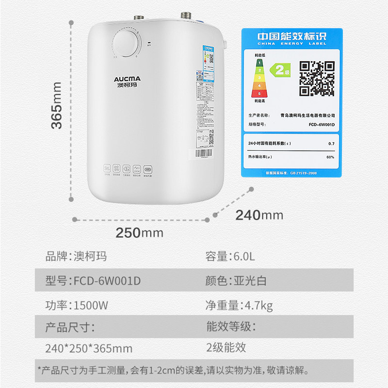 上门安装澳柯玛小厨宝储水式恒温电热水器速热式小型厨房家用001D