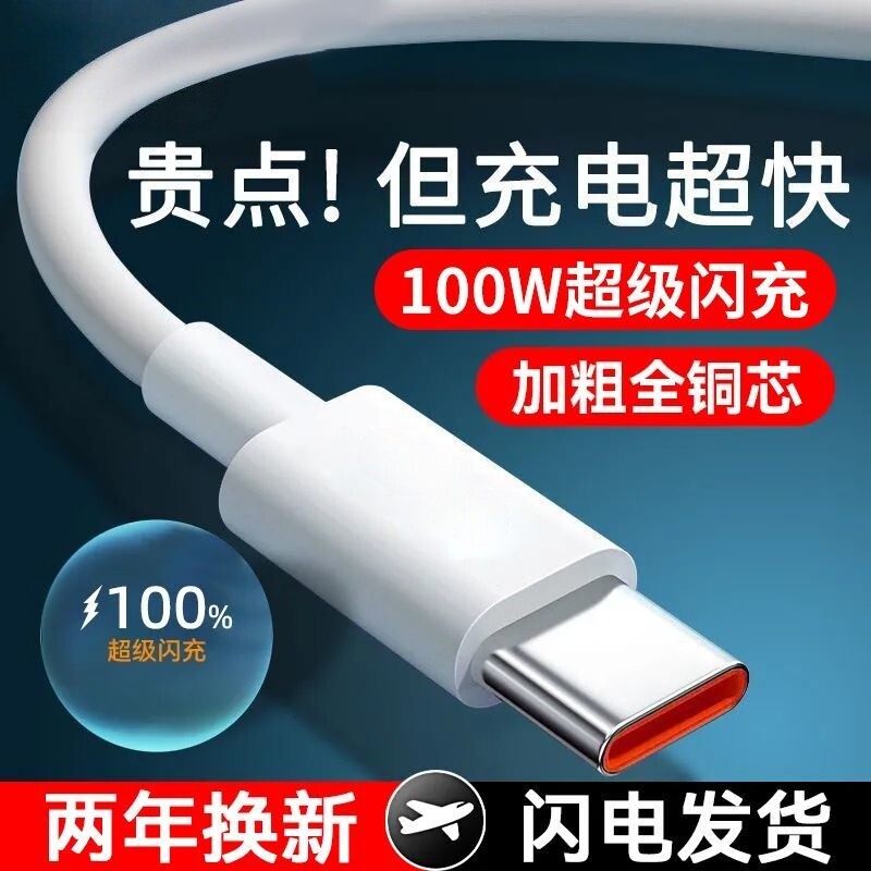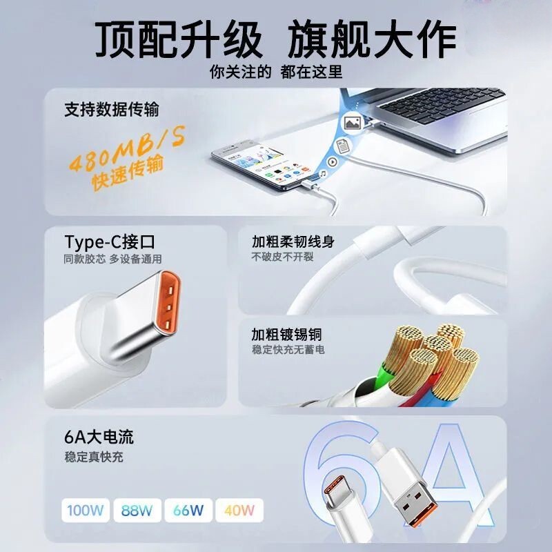 Type-c数据线6A适用华为mate40prop30p40荣耀VIVO快充线100/88/66/40W手机/电脑充电线AC88/66w数据传输安卓