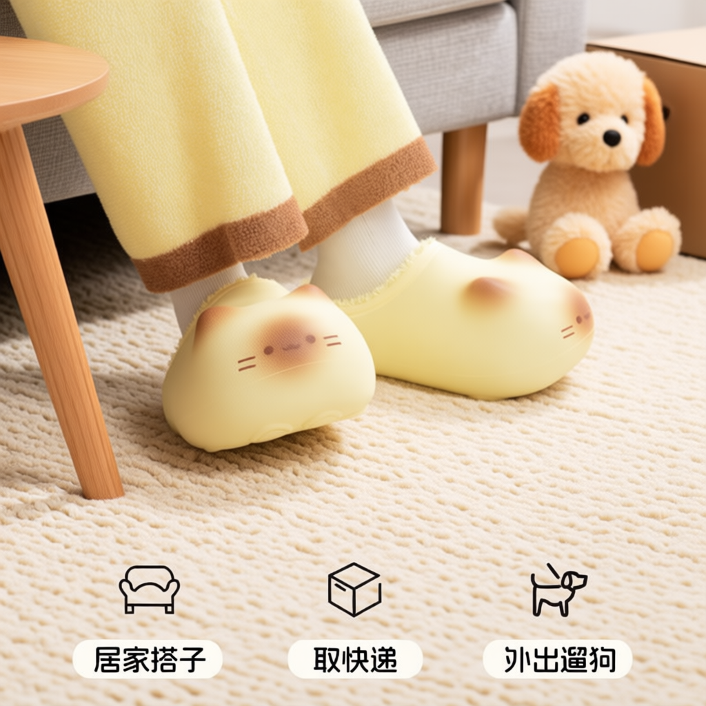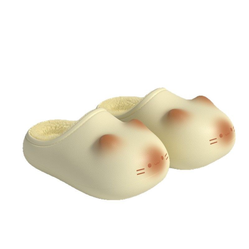 可爱卡通猫咪炭烧小猫爪子脚印棉拖鞋女冬居家外穿防水防滑月子鞋
