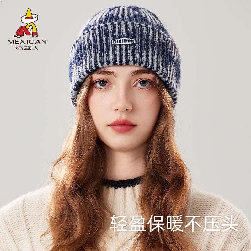 稻草人针织帽女冬季大头围帽子情侣学生超大版型保暖毛线帽显脸小