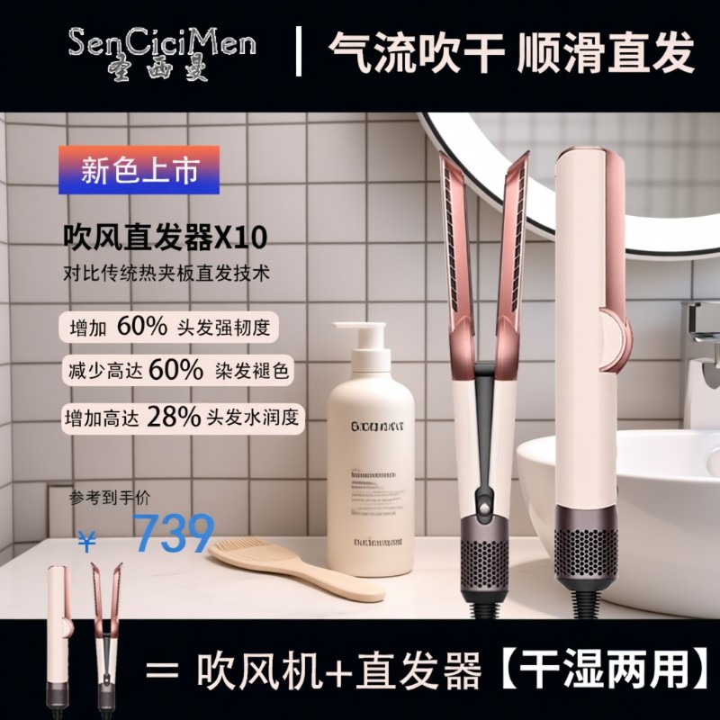 新款负离子护发HT01多功能美发棒卷发棒吹风机卷直两用直发器家用