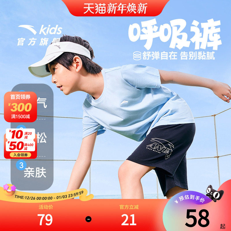 安踏儿童装男童运动短裤夏季薄款2025新款夏装中大童宽松五分裤子