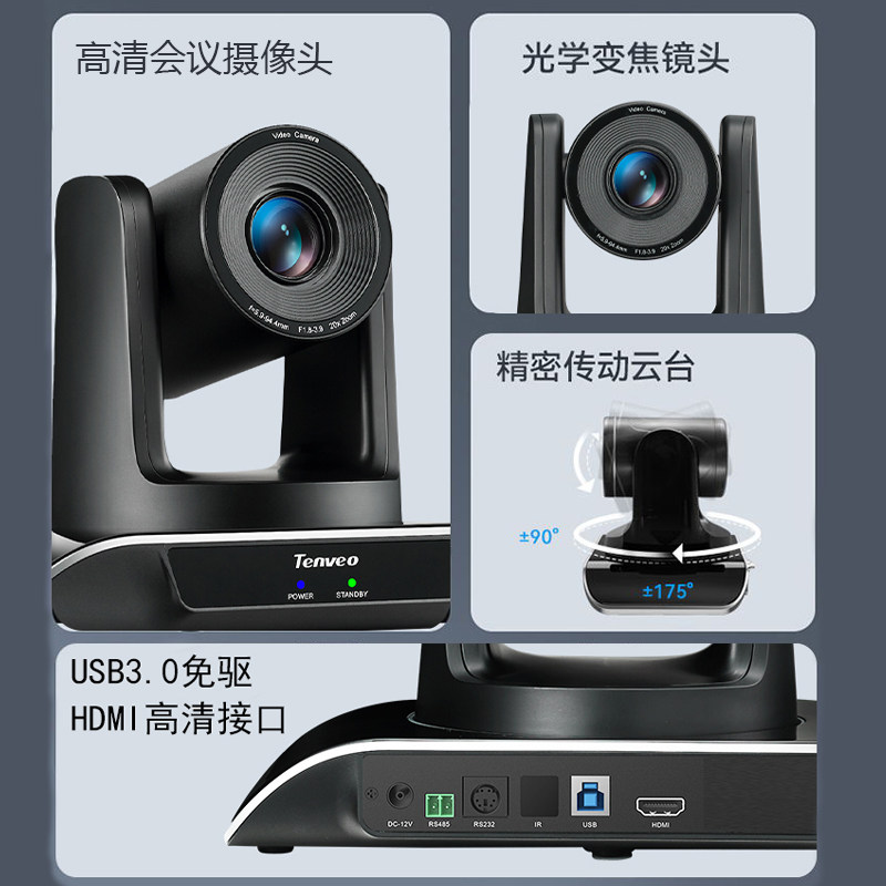 Tenveo腾为1080P高清视频会议摄像机20倍光学变焦USB会议摄像头笔记本台式大型会议室摄影头远程会议设备终端
