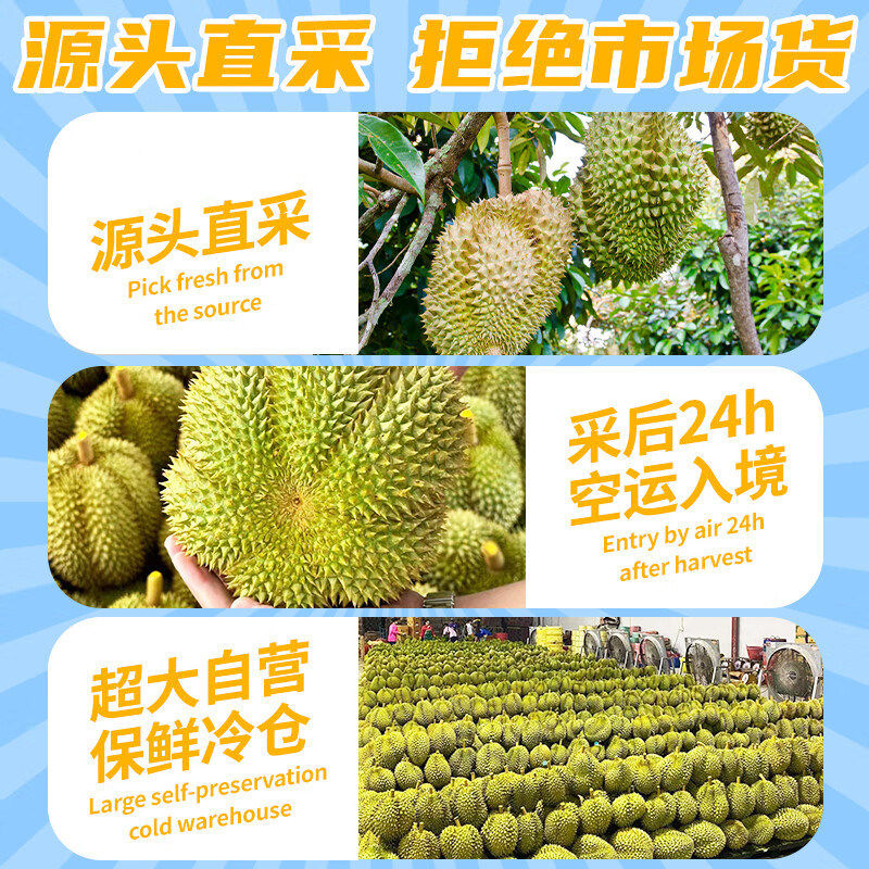 市舶士福明榴莲D226马来西亚自然树熟液氮整果新鲜水果顺丰包邮