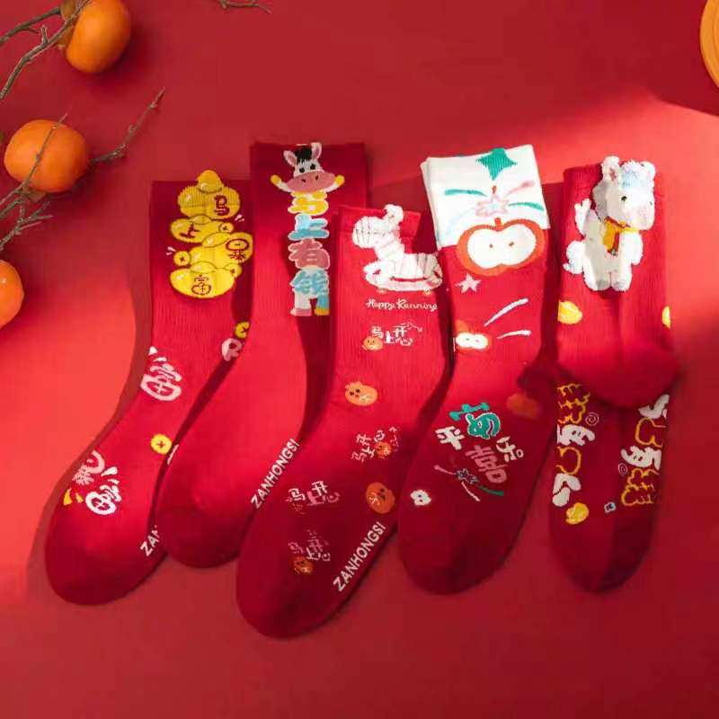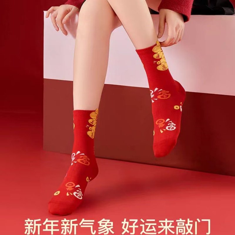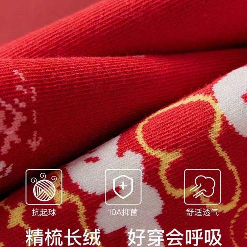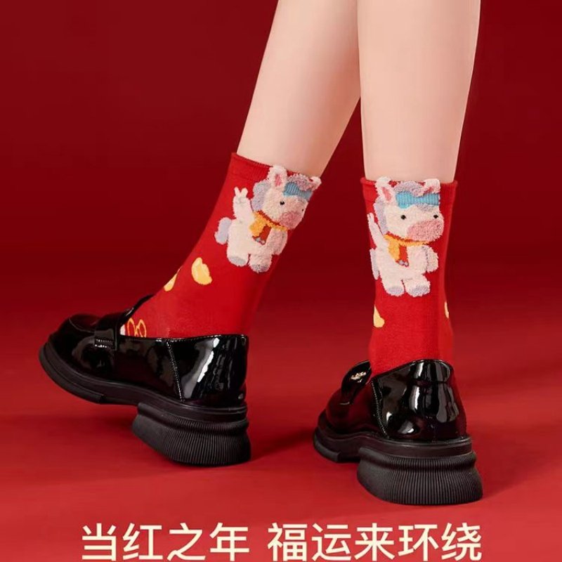红袜子2026马年女款中筒袜秋冬季新款男情侣新年保暖长袜红色大红