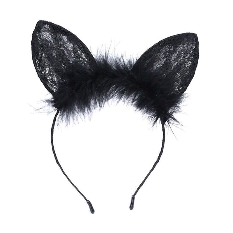 甜辣性感百搭拍照头饰猫耳朵蕾丝发箍秋冬毛绒头箍兽耳发饰女手套