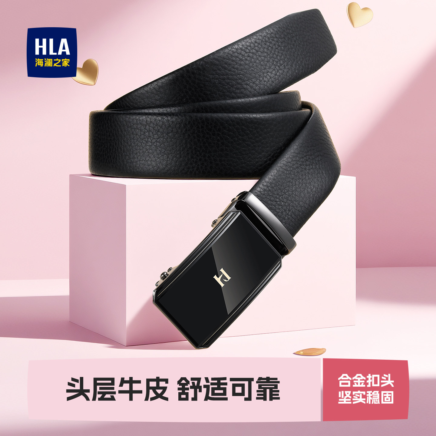 海澜之家皮带男士真皮腰带送男友老公情人节礼物实用头层牛皮裤带