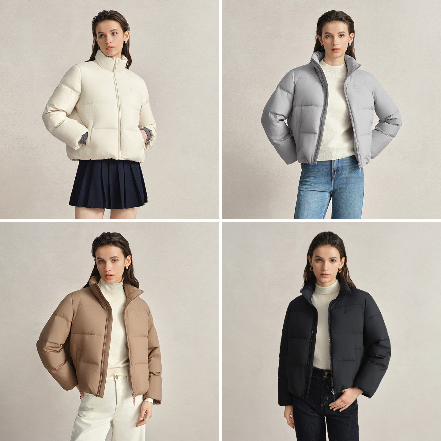 【鞠婧祎同款】鸭鸭2025年冬新款百搭短款女士纯色立领羽绒服外套