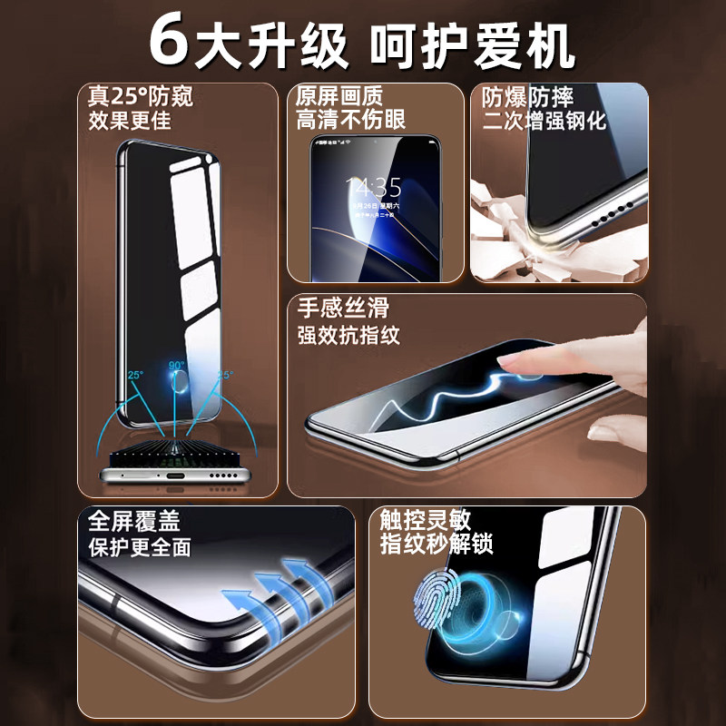 升级指纹秒解版 新25°真防窥膜 高透光无色