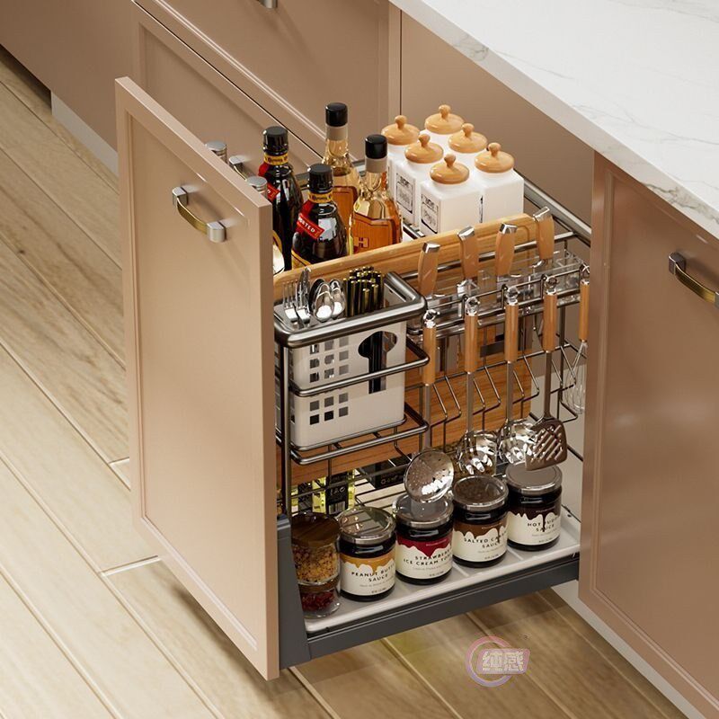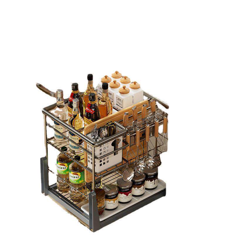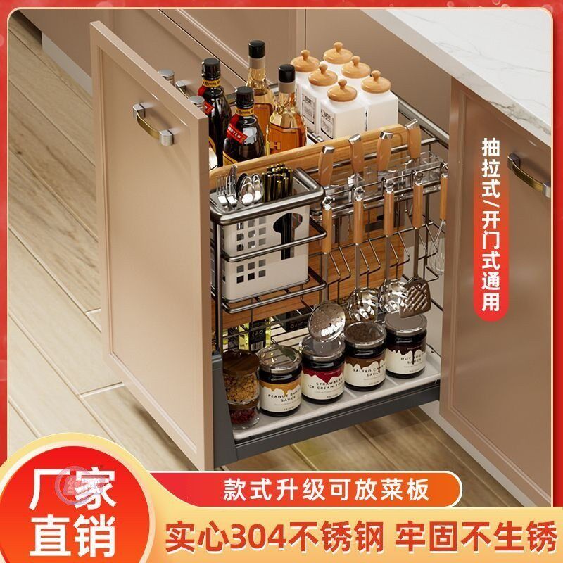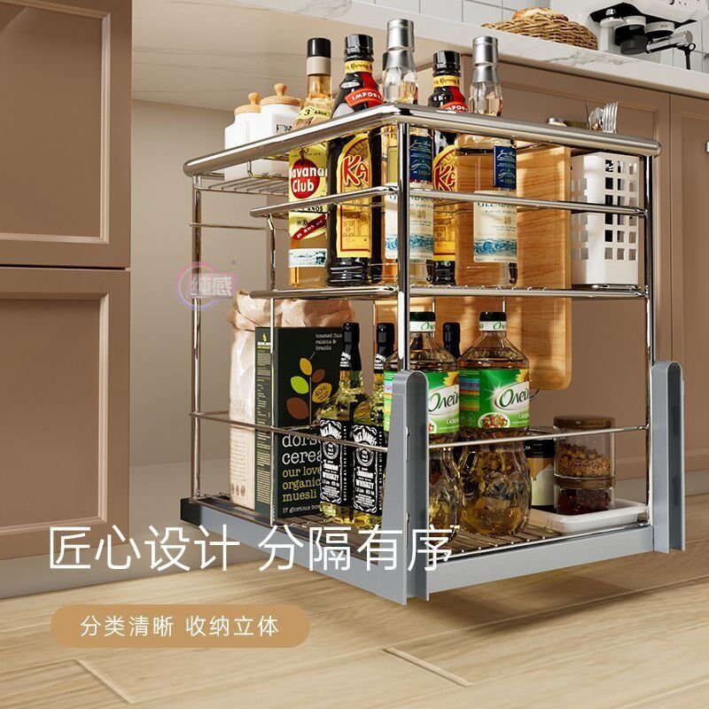 热销厨房拉篮抽屉式置物架调料收纳篮家用304不锈钢调味拉篮多层