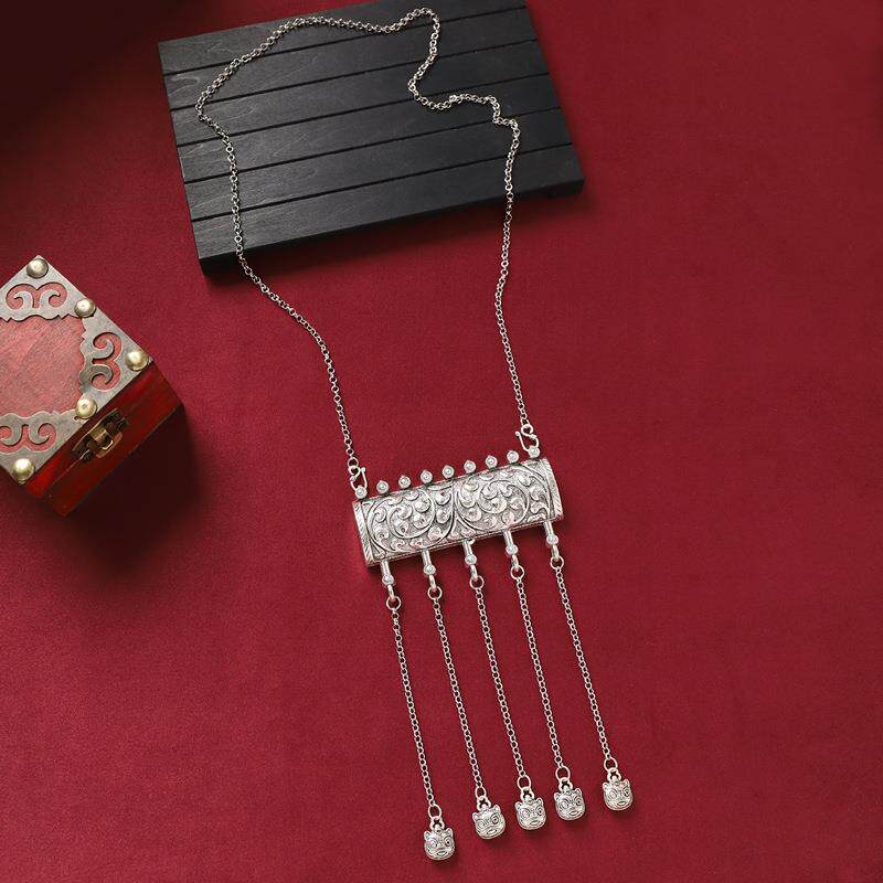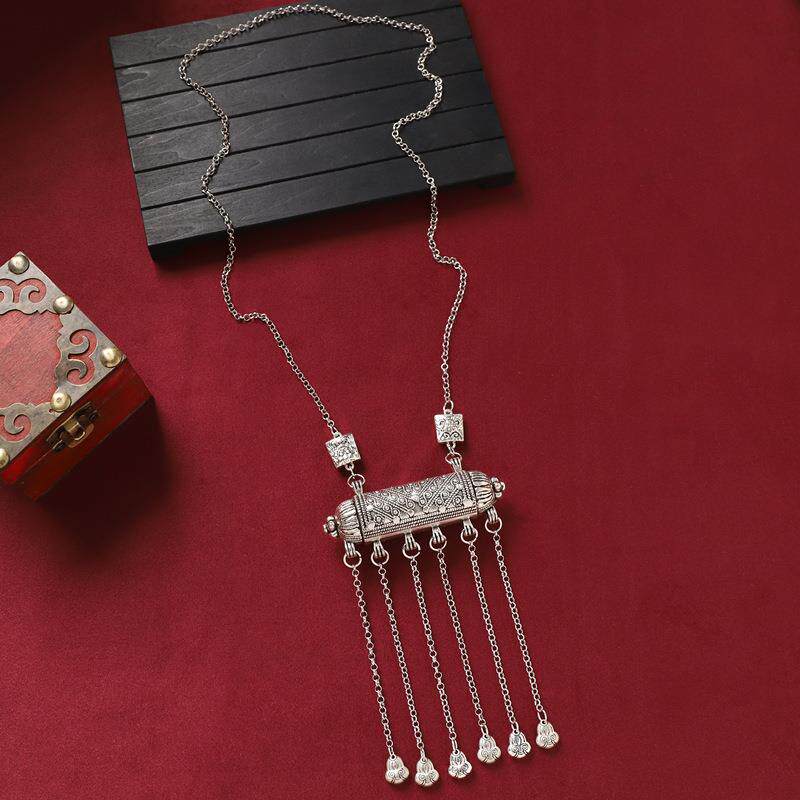 民族风长款苗银复古项链古银雕花流苏毛衣链女汉服旗袍新中式配饰