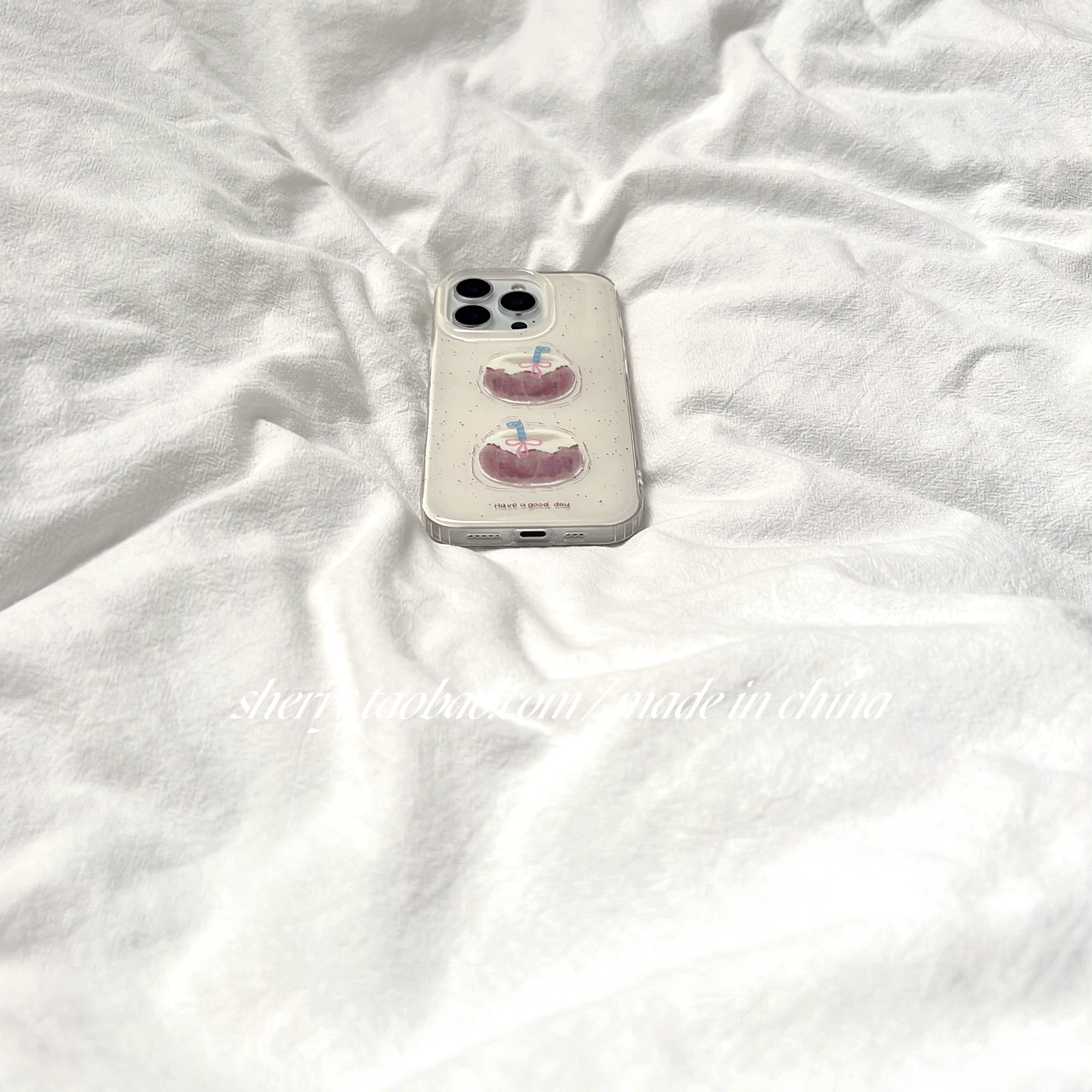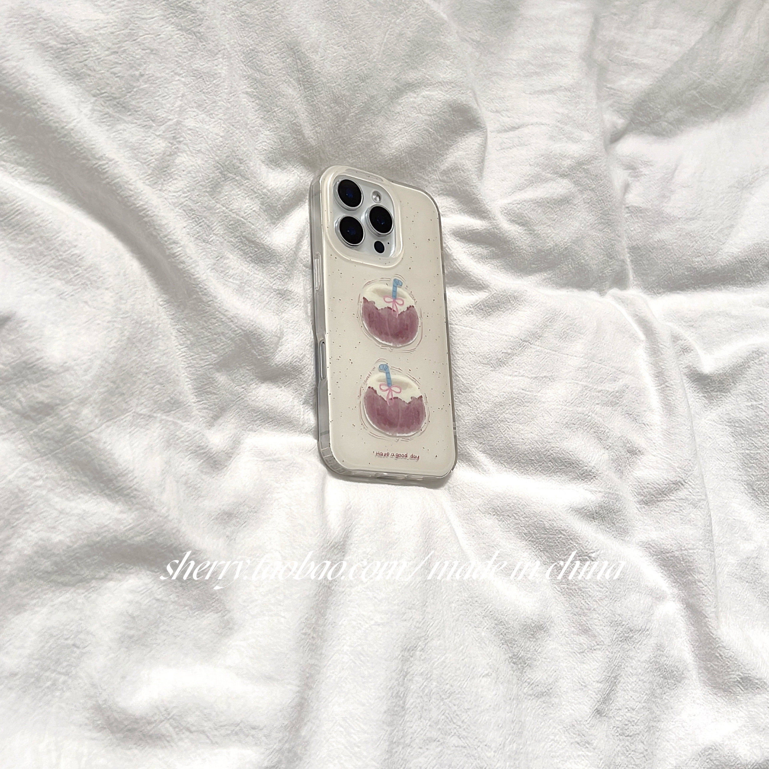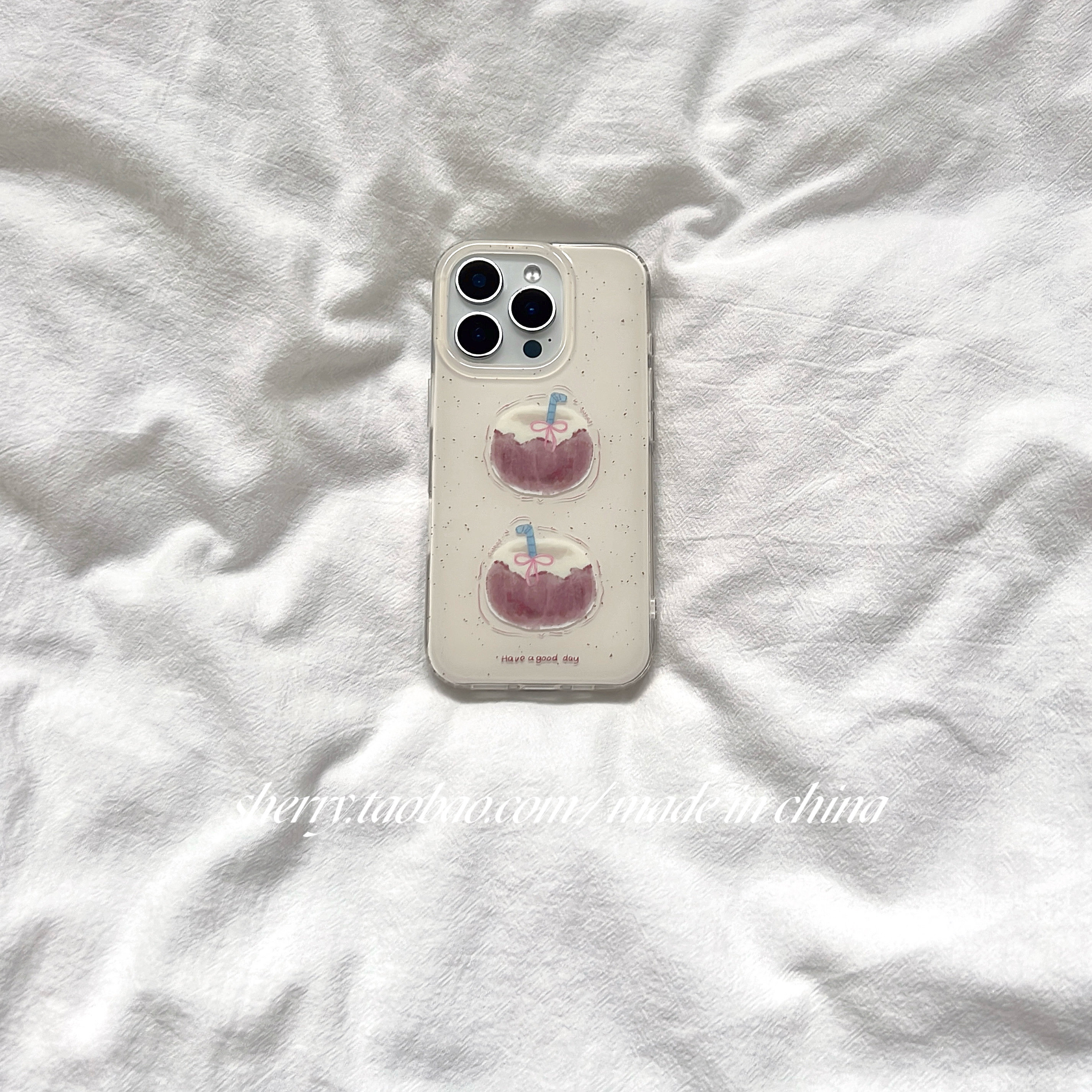 SHERRY*ins奶油风泼墨椰子壳适用于苹果16ProMax手机壳iPhone15Pro小众少女心14简约13小清新卡通甜美气质