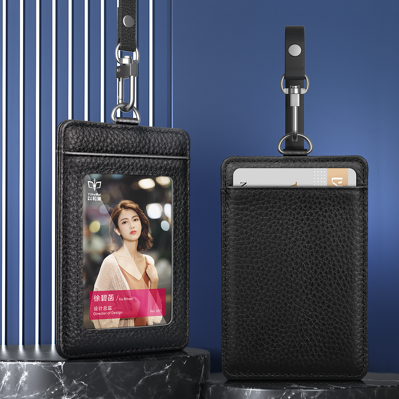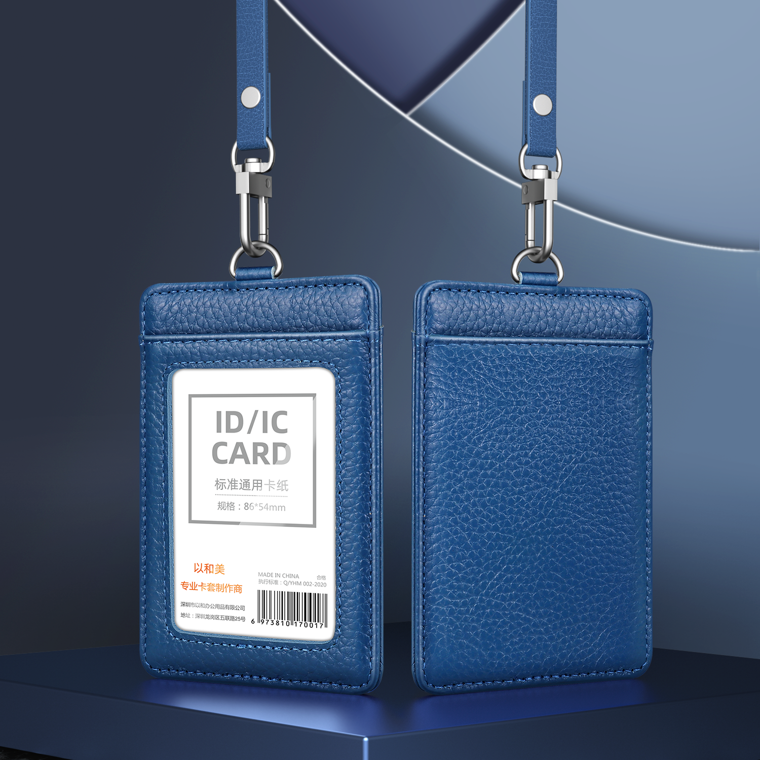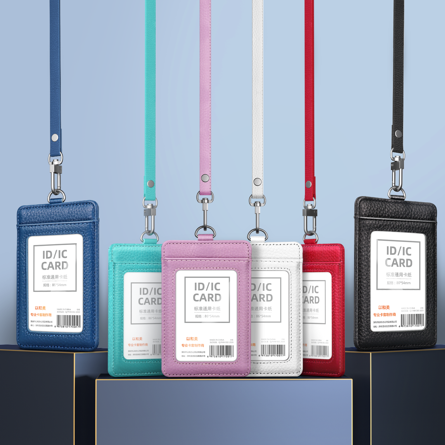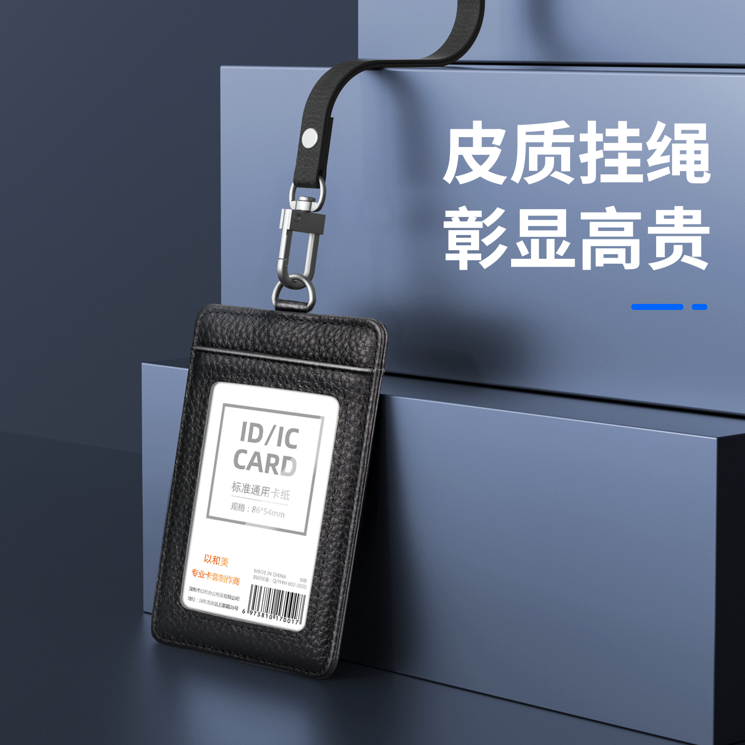 真皮卡套工作证头层牛皮工牌厂牌工号牌卡片套出入证件门禁卡多色可选定制logo胸牌挂脖卡套职场高端简约工牌