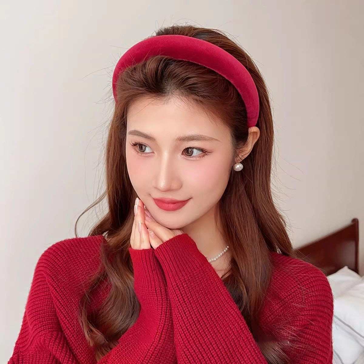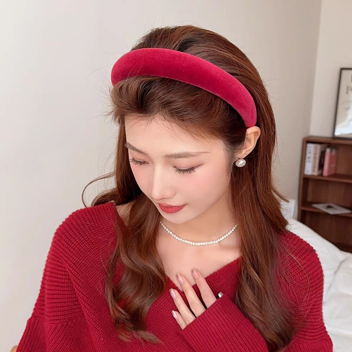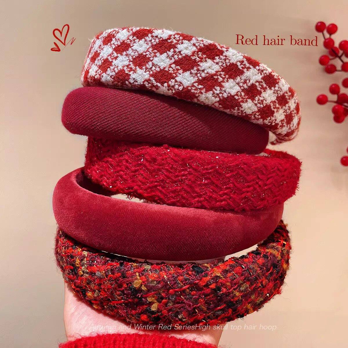 新年红色小香风发箍高颅顶宽边海绵洗脸高级感头箍秋冬发饰女格子