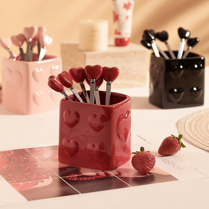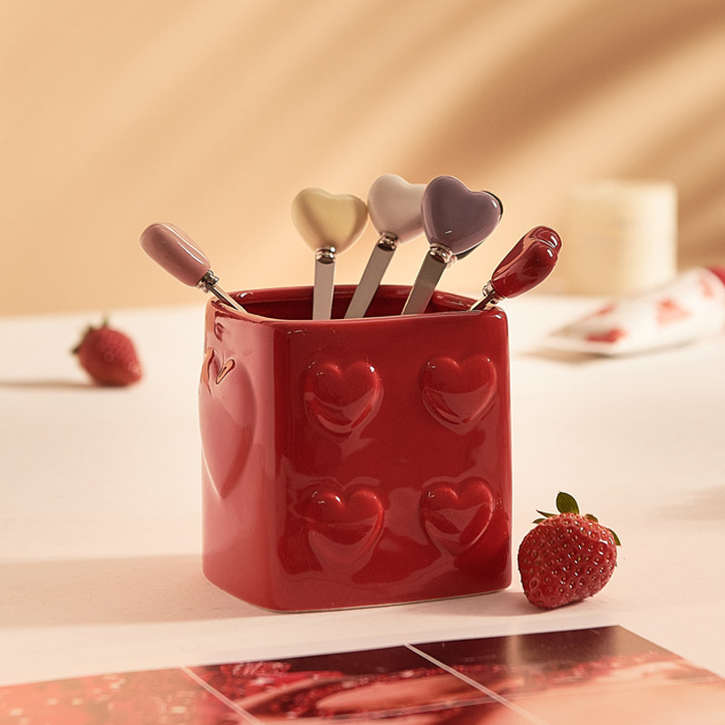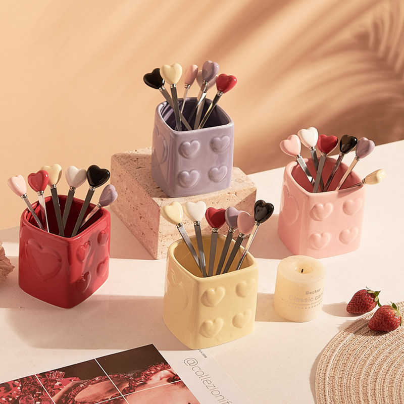 许多爱心水果叉轻奢高级感304不锈钢叉子收纳罐艺术水果签蛋糕叉