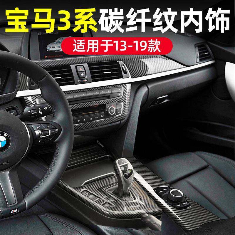 适用13-19宝马3系内饰中控碳纤维面板贴车门饰条4系318l320li改装