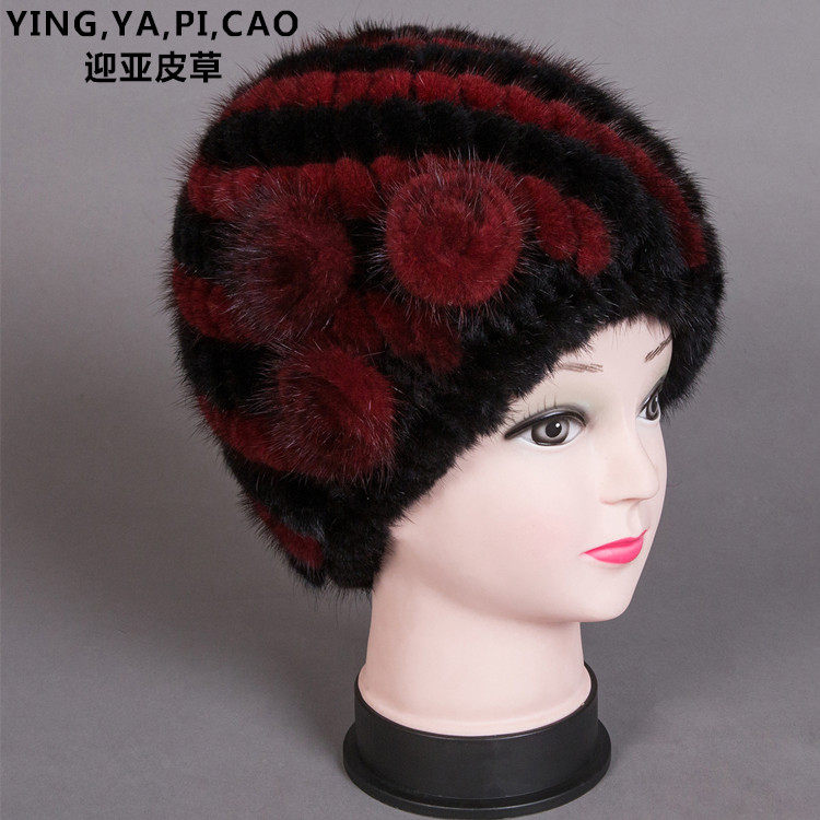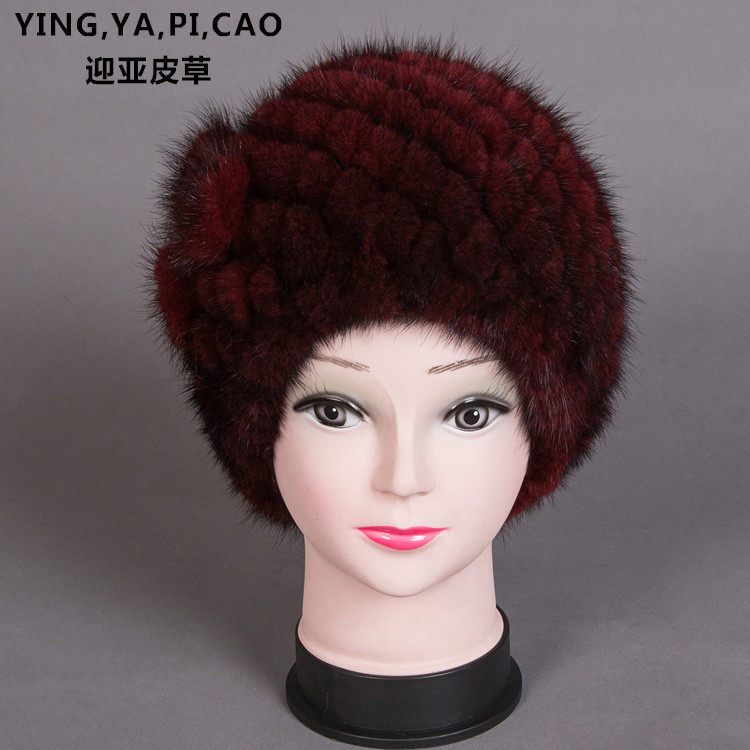 貂毛帽子 女 妈妈帽奶奶帽真皮貂绒冬老人加厚护耳皮草圆顶帽优雅