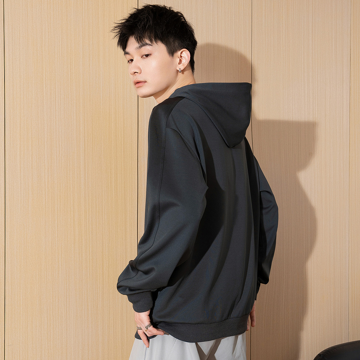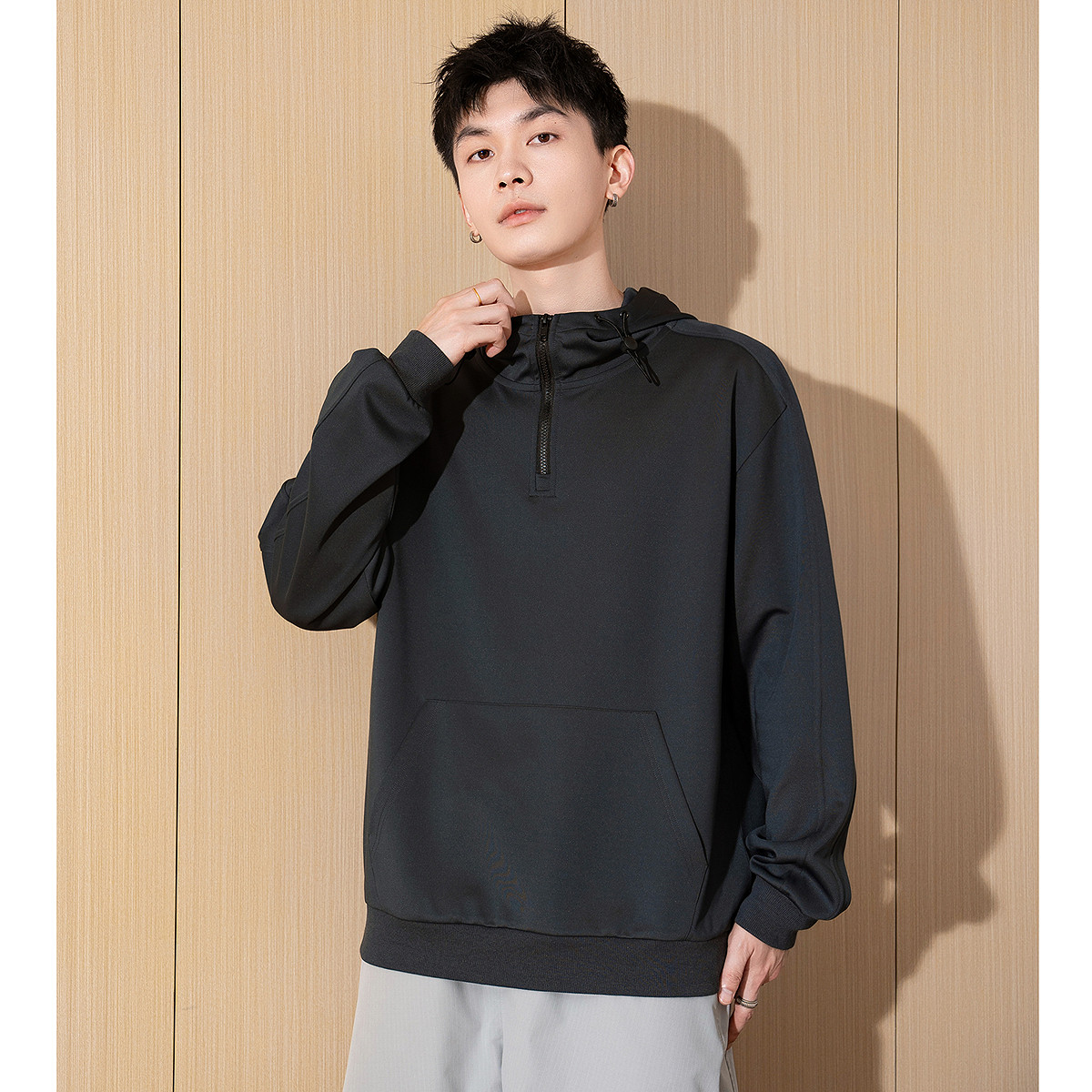 唐狮春新款男士卫衣连帽抽绳拉链宽松套头外套港风休闲上衣TD