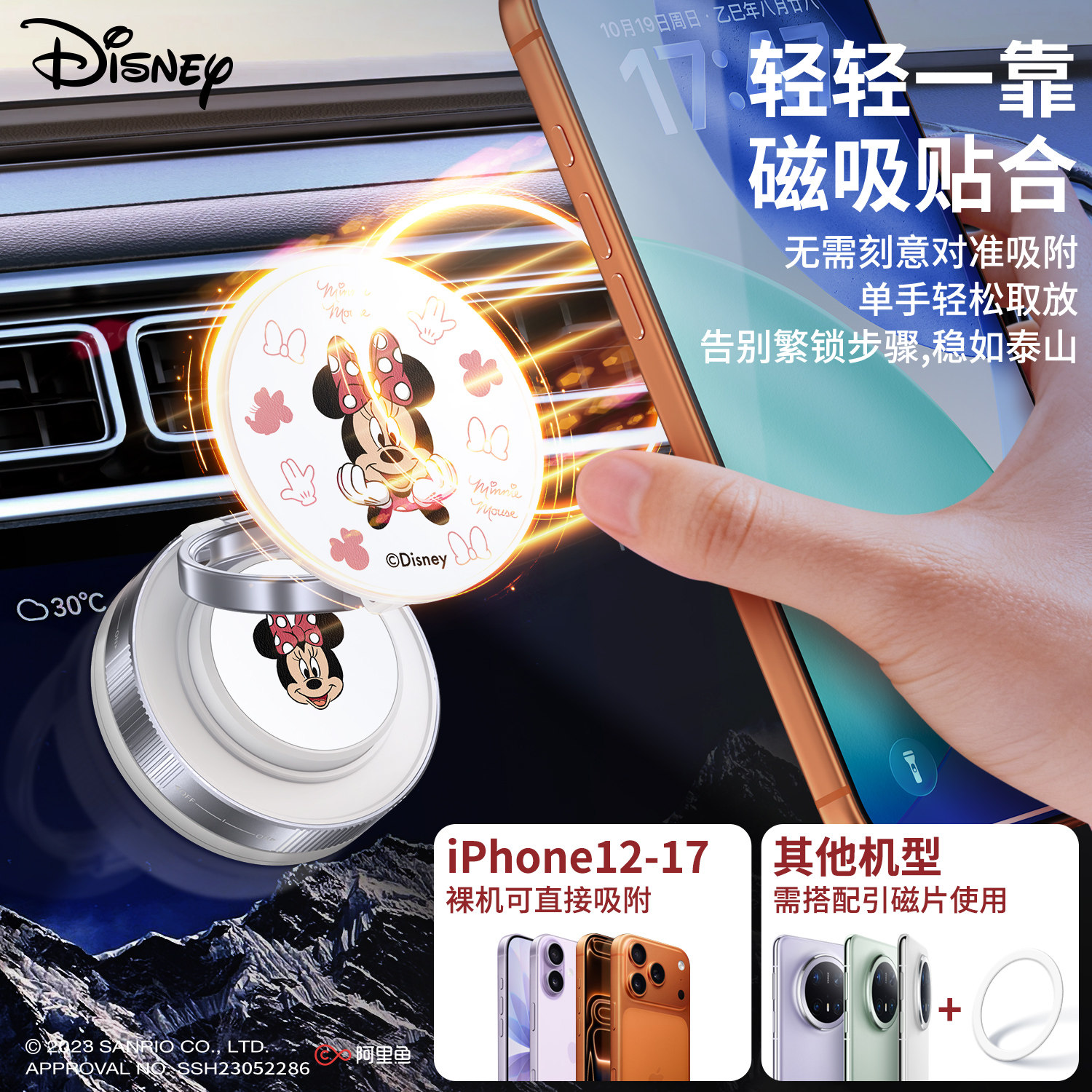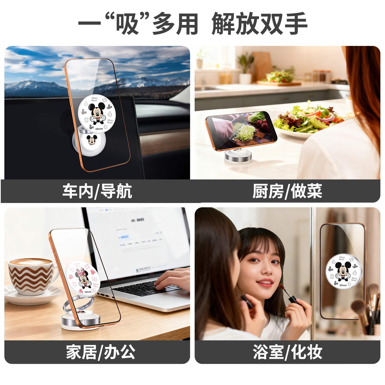 迪士尼正版车载磁吸手机支架2026新款真空吸附汽车内导航专用吸盘手机支撑架玛丽猫高颜值女360可旋转手机架