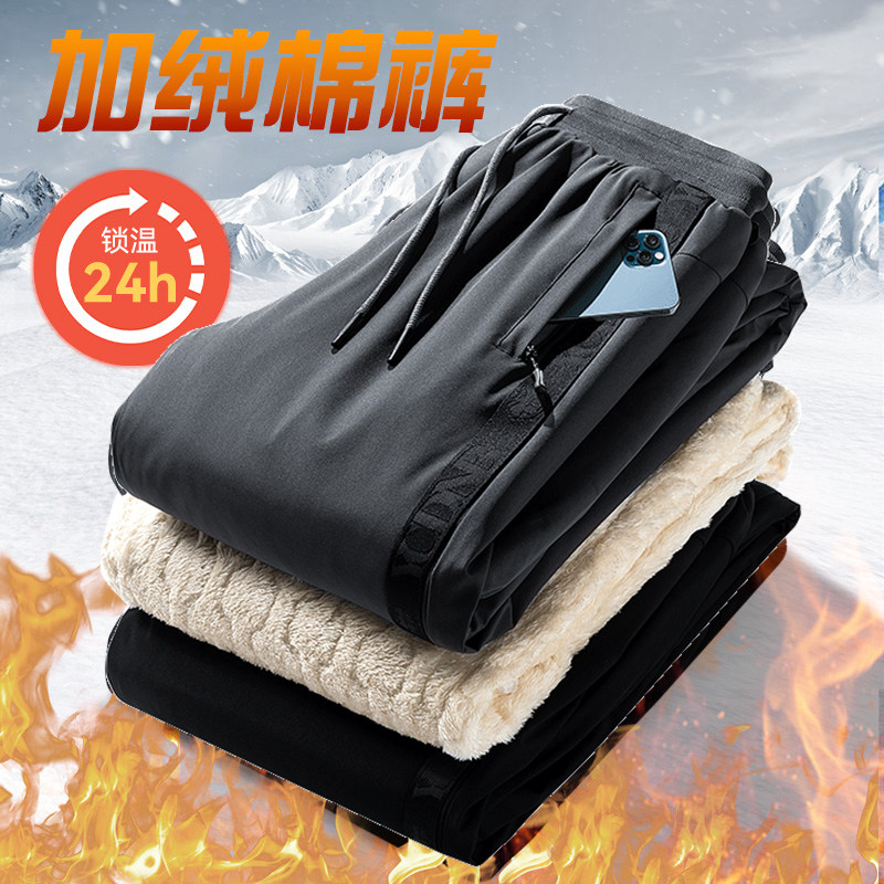 特步加绒卫裤男裤加厚秋冬款保暖缩脚裤直筒休闲裤百搭男子运动裤