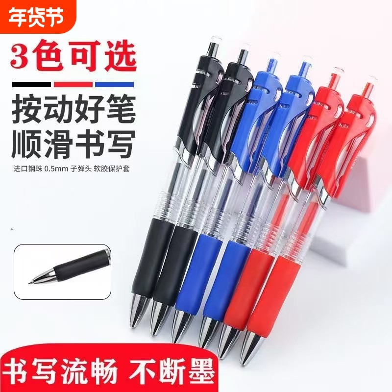 按动中性笔K35办公签字笔刷题签字笔黑笔水笔速干顺滑小学生初中生专用考试黑色笔芯子弹头红笔圆珠笔批发