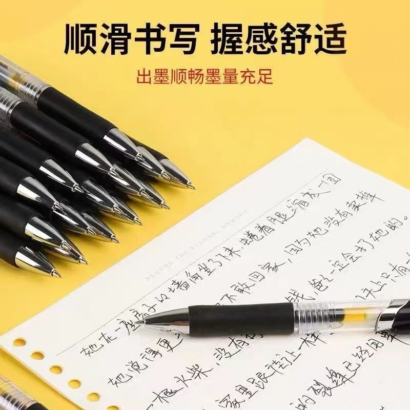 国风桶装刷题笔速干顺滑黑笔高颜值按动中性笔ST0.5黑色笔芯水性圆珠笔小学生专用考试笔非按斤卖碳素签字笔