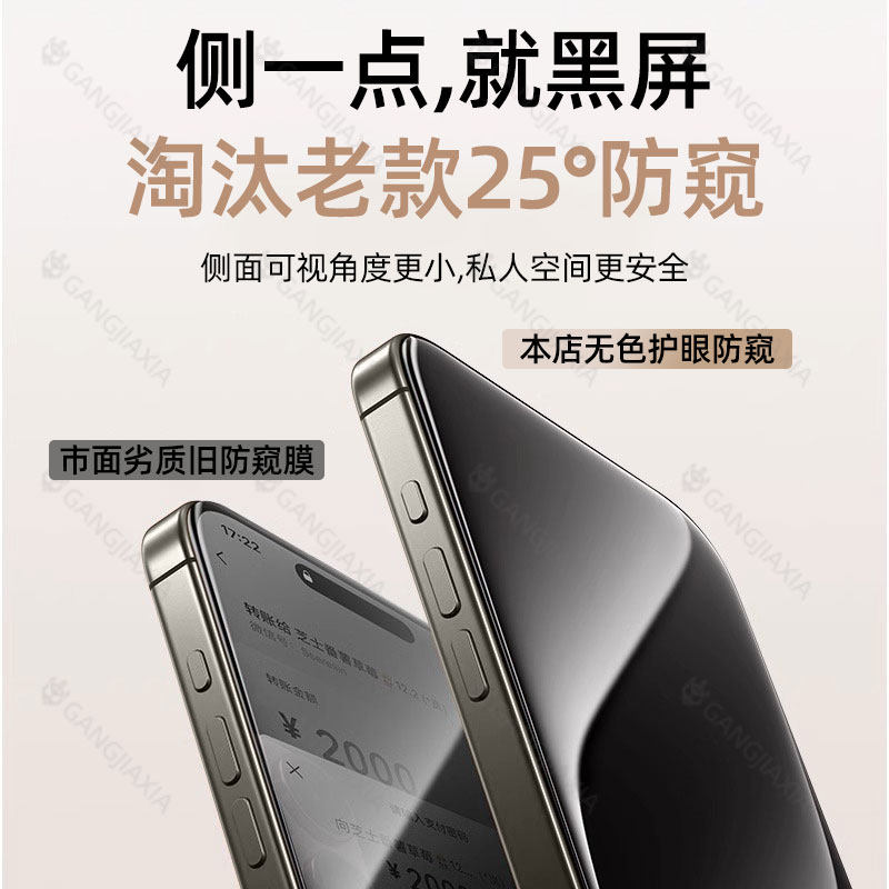图拉斯小黑膜适用苹果17promax防窥膜iPhone16pro手机15防偷窥钢化膜ip14pm新款无黑边13高清12屏幕贴膜防摔