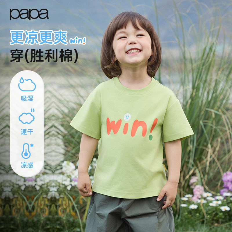 【胜利棉】papa爬爬夏季儿童t恤短袖男女童圆领上衣亲肤透气凉感