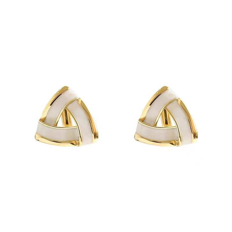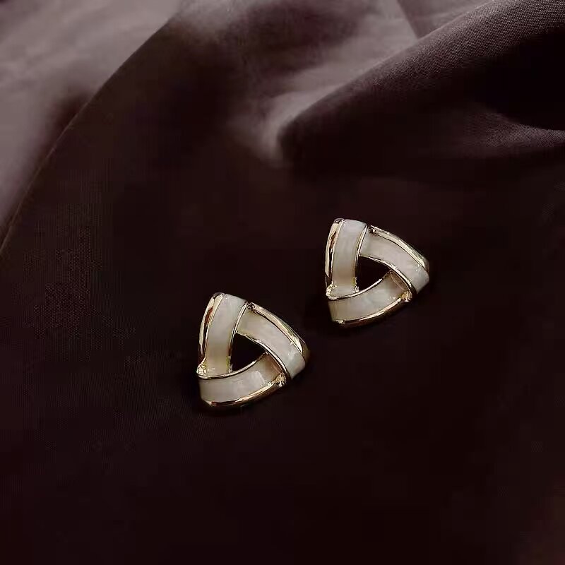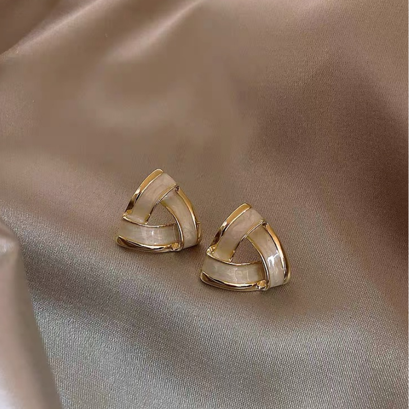 奶白滴油三角形耳钉港风复古几何高级感耳环小巧百搭简约耳饰