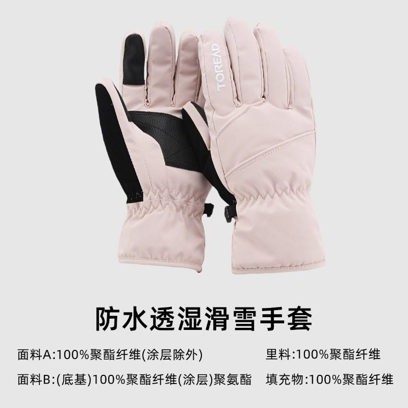 探路者防水登山手套男2025秋冬新款可触屏保暖加厚防寒滑雪手套女