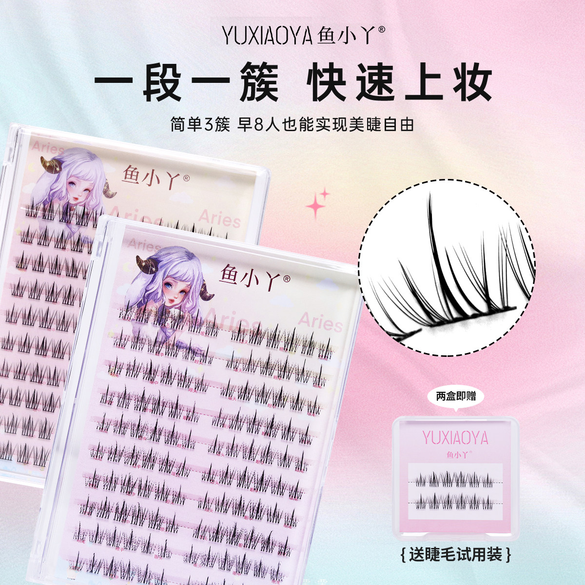 鱼小丫假睫毛太阳花懒人三部曲自然仿真新手睫毛单簇分段式眼睫毛