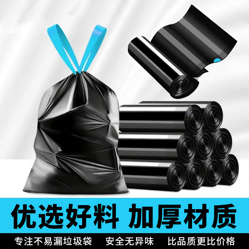 手提式抽绳垃圾袋家用加厚实惠批发装厨房黑色大号垃圾袋