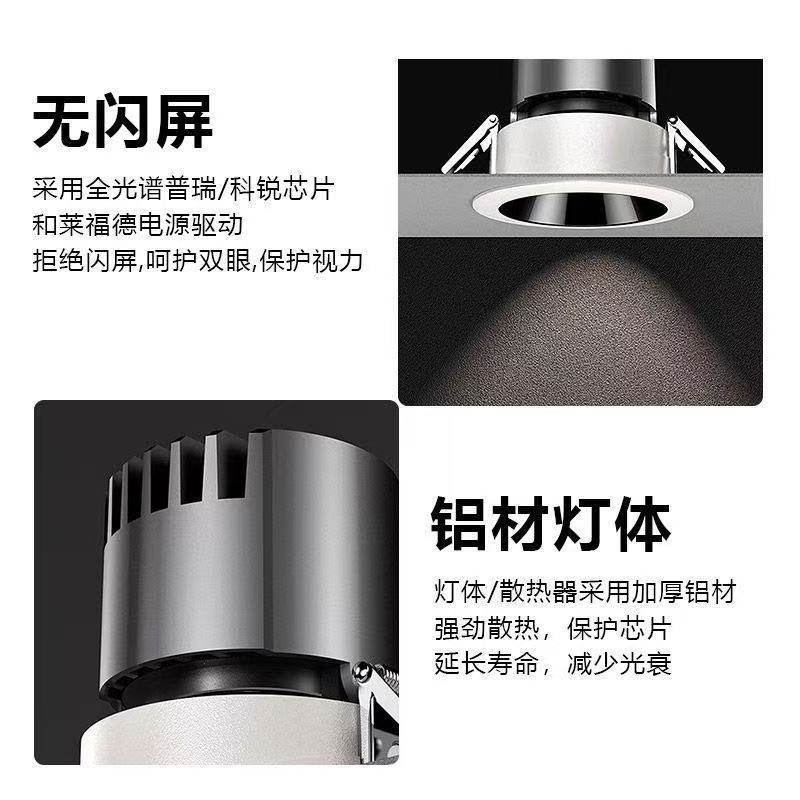 led嵌入式筒灯商场展厅防眩无频闪店铺家用天花灯小开孔射灯护眼