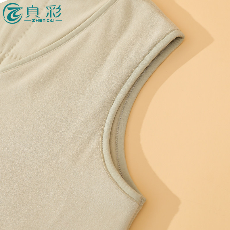 真彩100%羊毛四层加厚坎肩秋冬女士无袖保暖马甲双面磨绒中年开衫