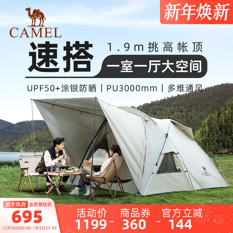 骆驼帐篷户外露营野营过夜便携式折叠全自动全套装备加厚黑胶新款
