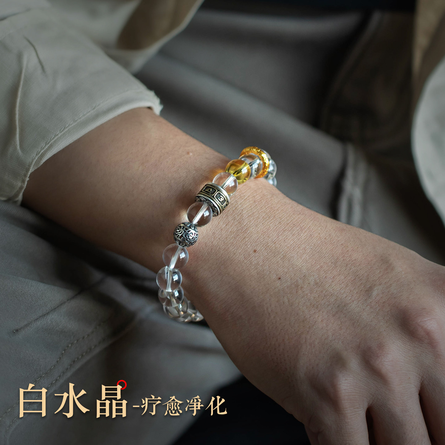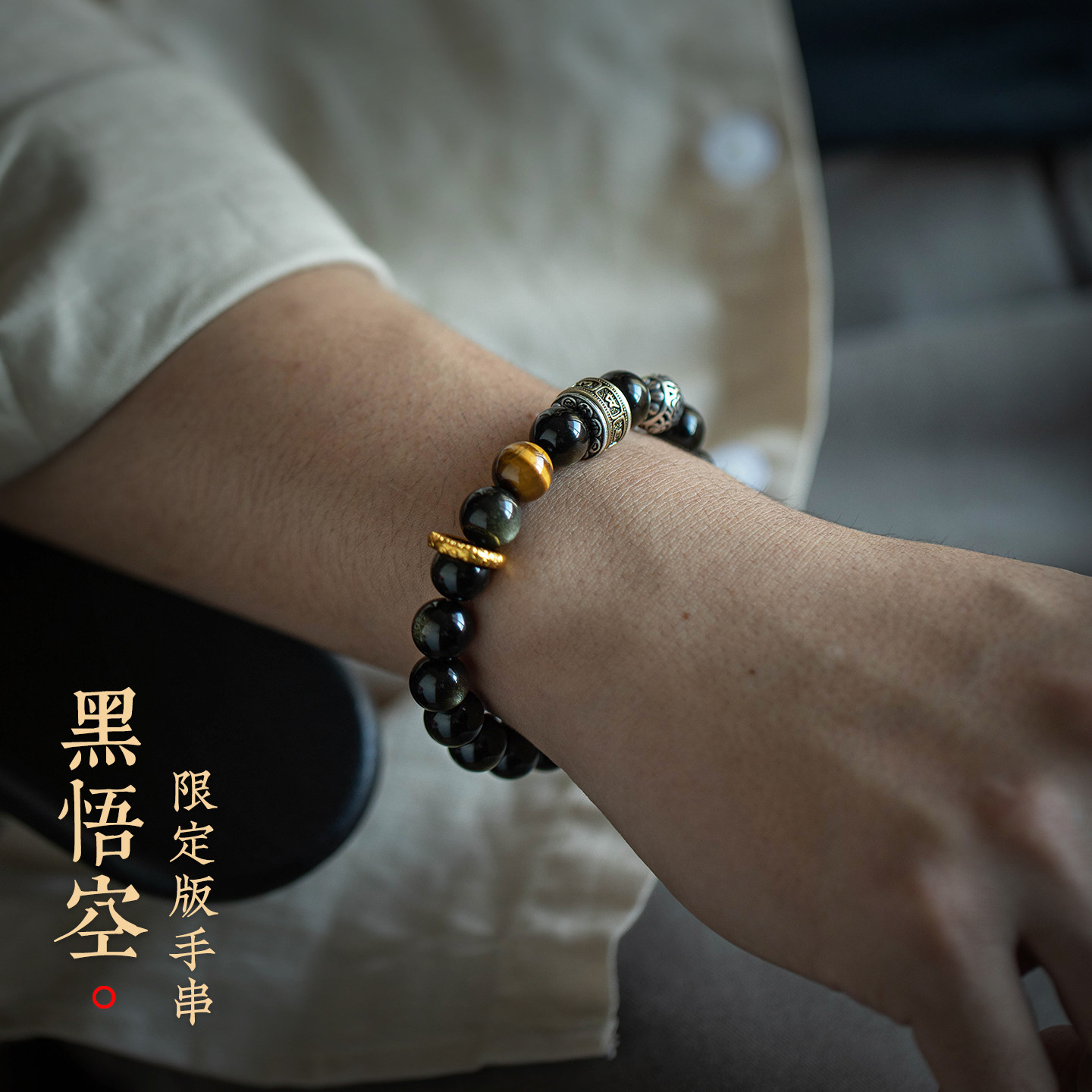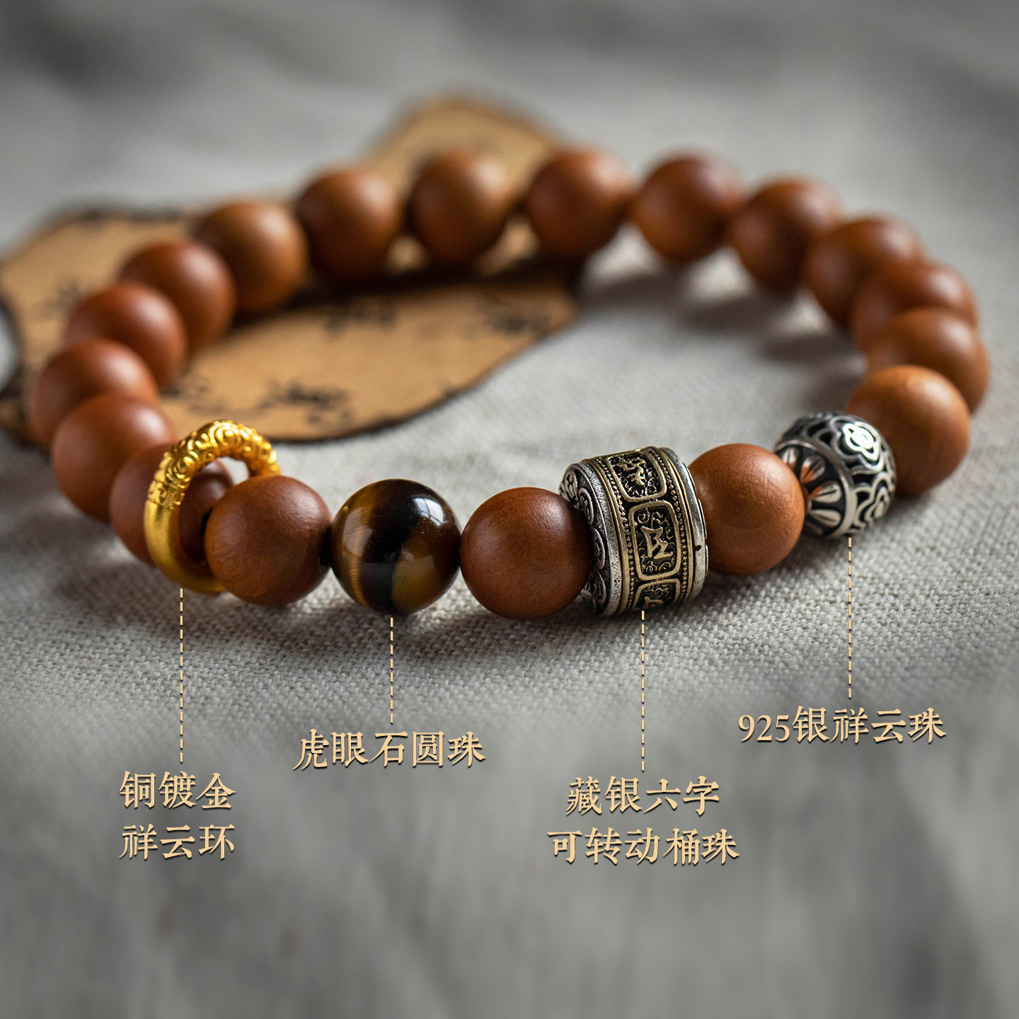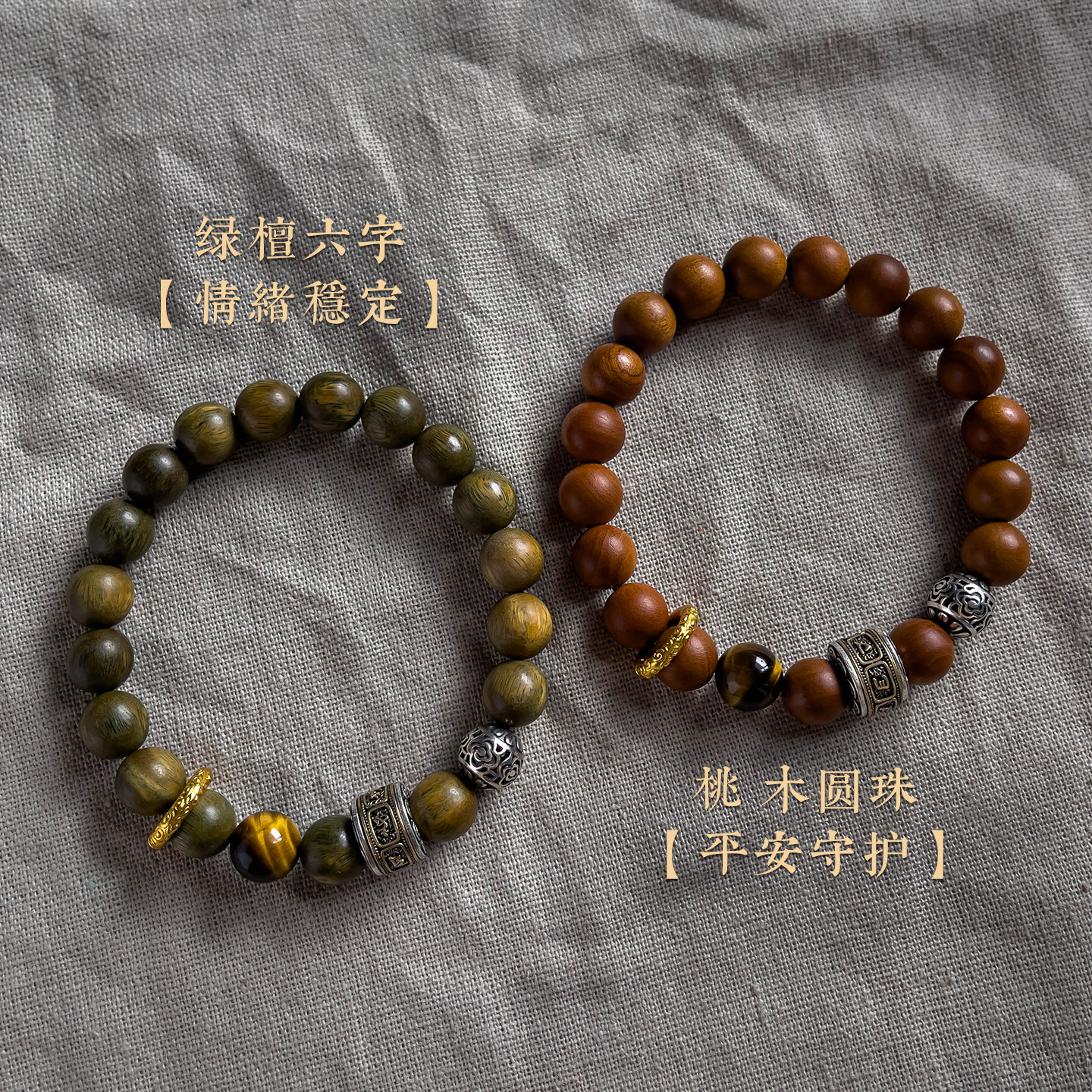 大善堂绿檀手串金曜石虎眼水晶护身手链男佛珠盘玩木质手饰女礼物