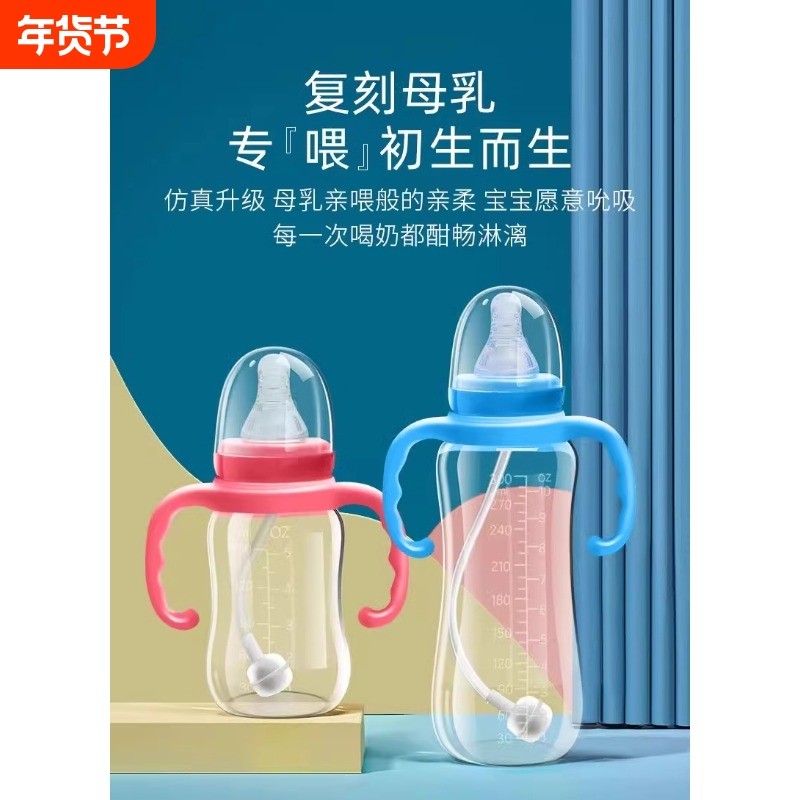 宝宝喝水婴儿标准口径奶瓶带硅胶奶嘴吸管防摔PP塑料新生防胀气