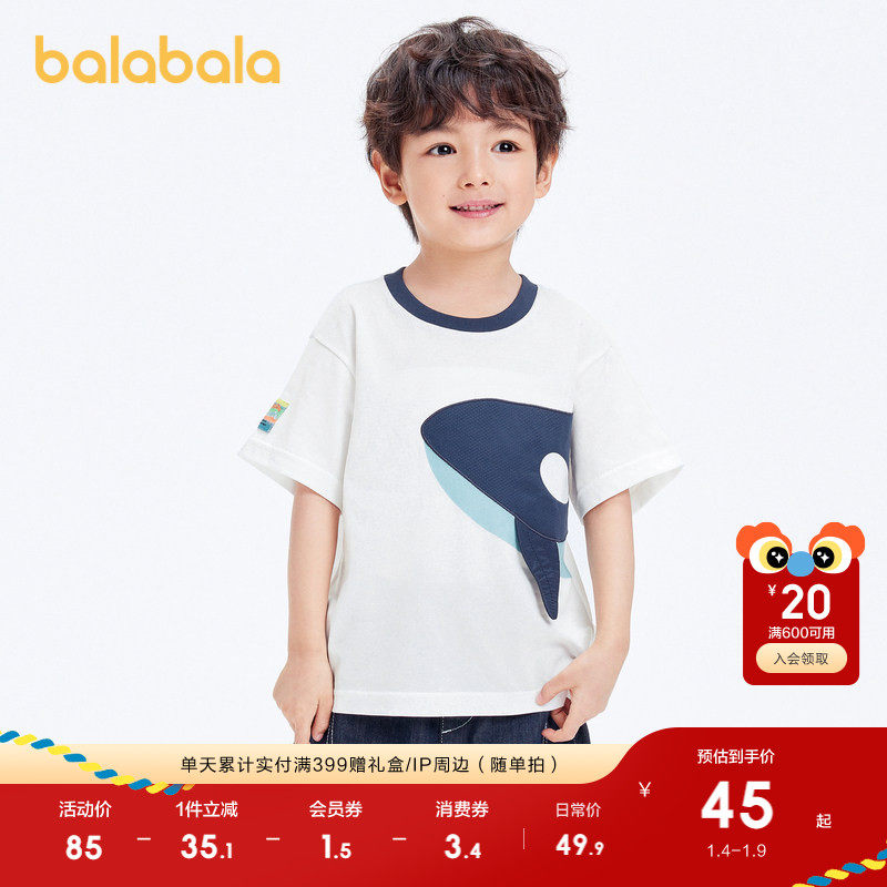 巴拉巴拉童装儿童短袖男童2025夏装时尚撞色t恤百搭纯色休闲上衣