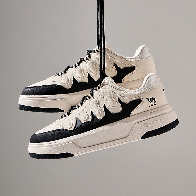 骆驼男鞋2026春季新款厚底增高防泼水休闲复古运动鞋拼色革面板鞋