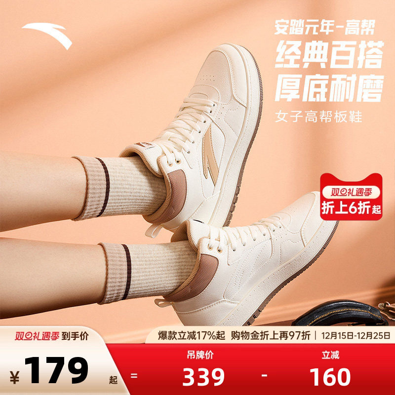 安踏元年经典高帮板鞋女鞋2025新款冬季皮面百搭潮流滑板运动鞋