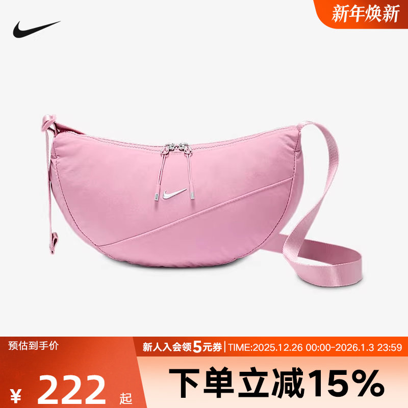 Nike耐克男女包斜挎背包轻便圆形包运动腰包粉色单肩包HQ4370-699
