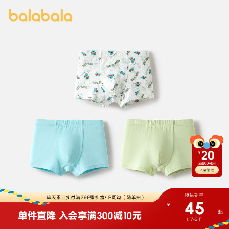【balaOne】巴拉巴拉儿童内裤棉男童不夹pp抗菌裆四角短裤三条装