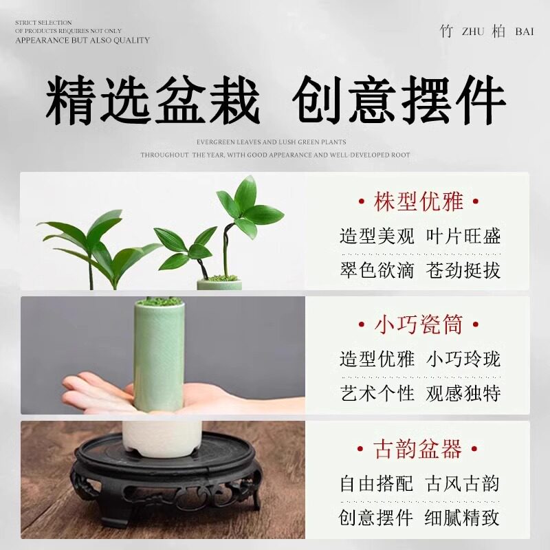 竹柏盆景迷你小盆栽驱蚊水培植物花卉办公室内桌面禅意绿植微景观