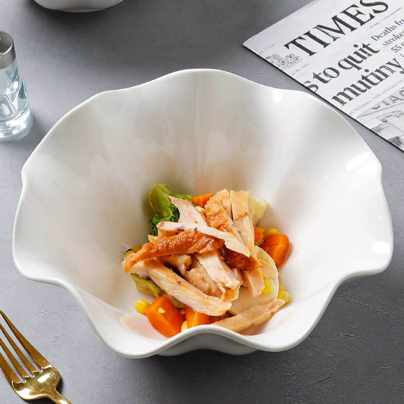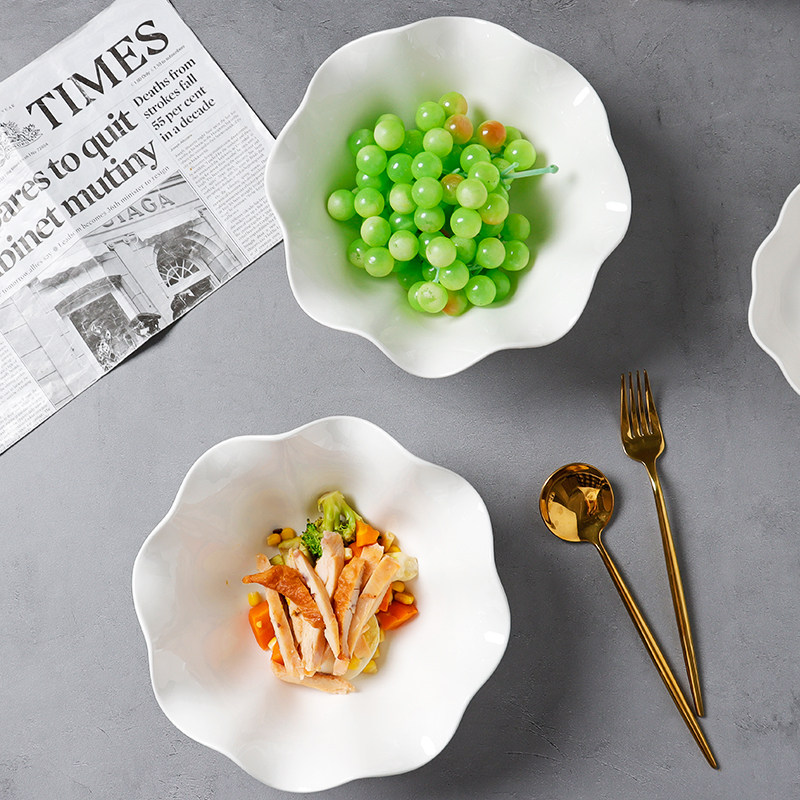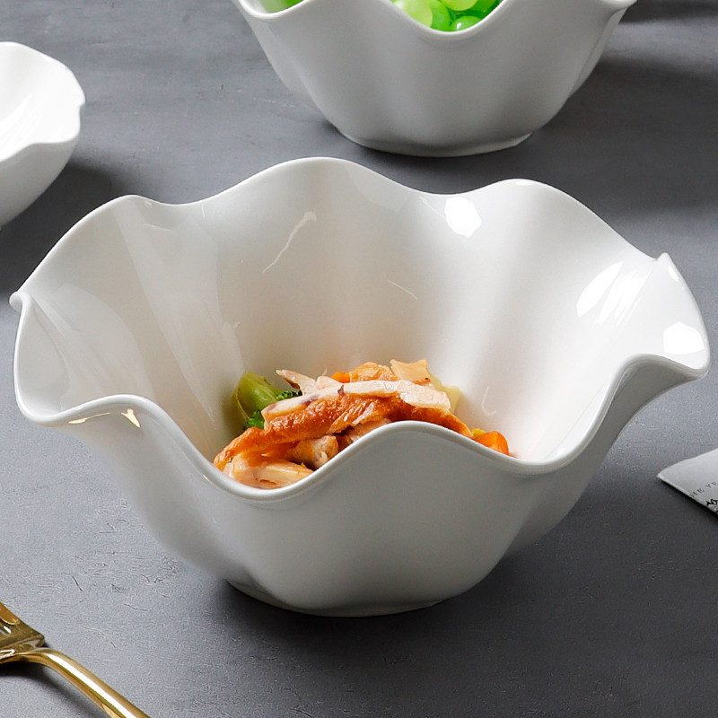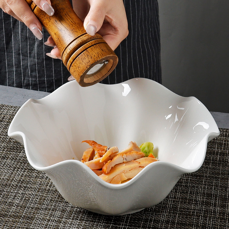 陶瓷碗家用大号高级感荷叶边2026新款陶瓷餐具水果沙拉碗纯白汤碗