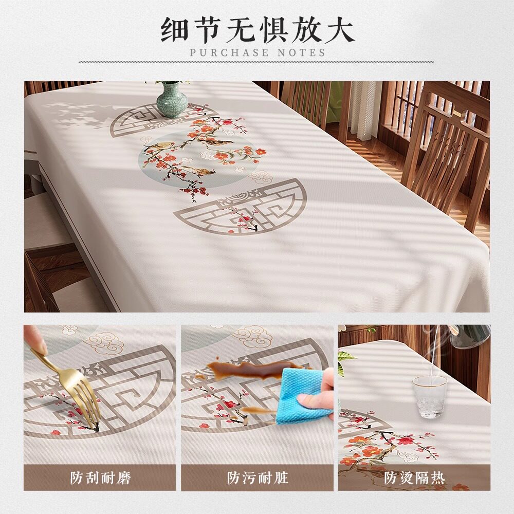 餐桌桌布免洗防水防油pvc新中式面垫长方形防烫实木茶几桌垫台布