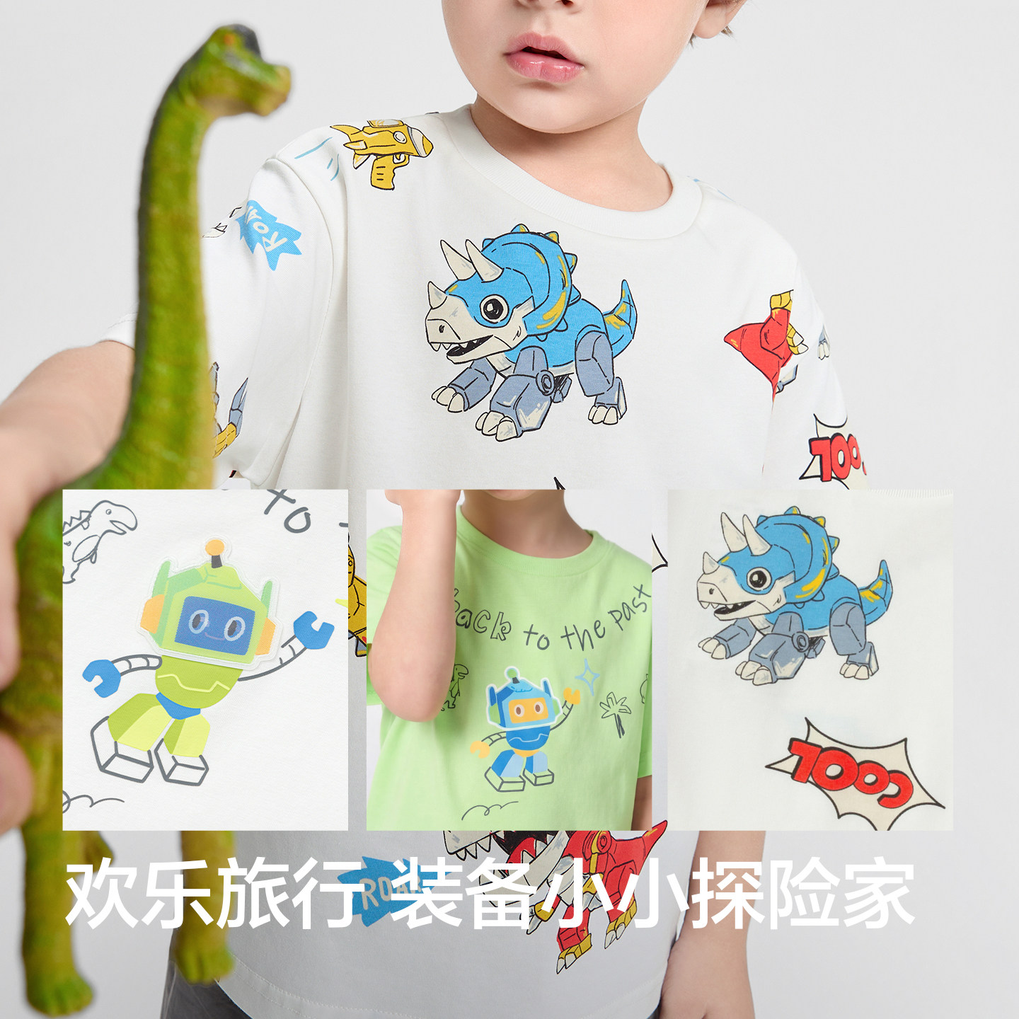 速干抗菌短袖t恤,童趣恐龙插画