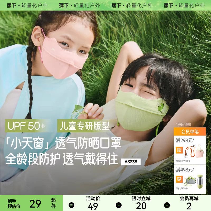 蕉下儿童防晒口罩AS338透气防紫外线男女童防晒面罩夏防紫外线